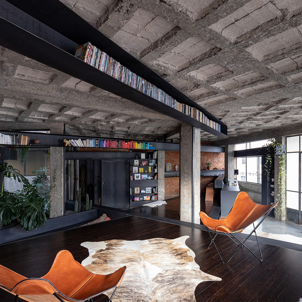 70’lerin modern Ekvator mimarisine sahip olan dairenin sahipleri, özel alanlar arasında güçlü bir bölme olmayan, yaşamak için özgür ve açık bir sosyal alan yaratmak istediler. Müşterinin istekleri doğrultusunda tasarımcı Aquiles Jarrín, yapıya müdahele ederken üç ana unsur üzerinde durmuş. Gün ışığı kullanımı, mevcut beton yapının kendisi ve Quito’nun tarihi merkezinin kentsel manzarasına bakan konumu.