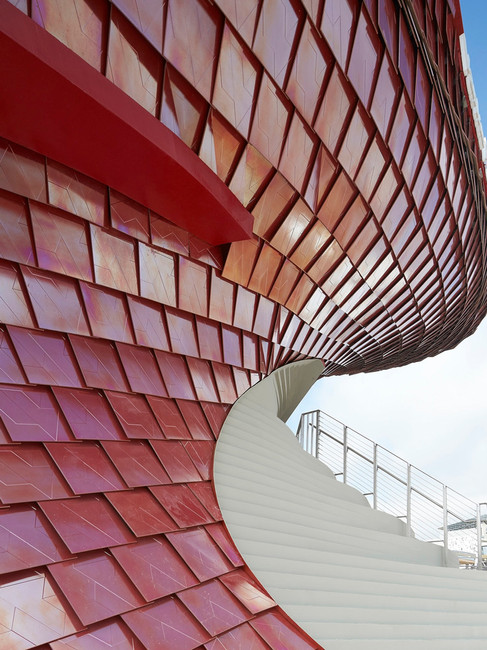 2015 Milan EXPO kapsamında mimar Daniel Libeskind tarafından Çin pavilyonu olmak üzere tasarlanan Vanke, ilhamını Çin kültüründen alıyor. Çin’in ekonomik ve teknolojik büyümesini dinamik formuyla temsil eden 800 metrekarelik yapının en dikkat çeken özelliği ise dış cephesini kaplayan kırmızı metalize seramik paneller. Oluşturduğu desenle Çin kültüründe önemli yere sahip olan ve gücü temsil eden efsanevi ejderhayı anımsatmak üzere tasarlanan seramik paneller, aynı zamanda hava temizleme özelliğiyle son derece sürdürülebilir bir işleve sahip. Seramiğin üç boyutlu yüzeyi, ışık ve bakış açısı değiştikçe değişen metalik bir renkle kaplanmış. Bazen koyu kırmızı, bazen göz kamaştırıcı bir altın rengi hatta belirli açılarda parlak bir beyaz olarak görünebilen fayanslar, torklu şekle ritmik bir desen ve matematiksel bir form vermek üzere son teknoloji bir kaplama destek sistemi ile kurulmuş.