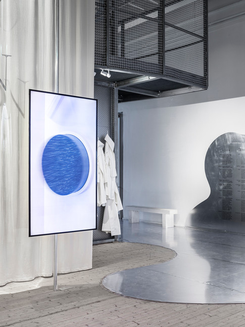 Sergiye girerken konuklar ayakkabılarını çıkarıyor ve metalik "dökülme" ye adım atarken bornoz giymeye davet ediliyor. Alanın çift koridorlu kurulumu, ziyaretçilerin birbirlerini gözlemlemelerine olanak tanıyarak canlı ASMR performansları için bir sahne yaratıyor. Konuklar yumuşak koridorlarda oturmak veya uzanmak için en rahat noktaları bulurken, ASMR'liler seremoninin yeni ustaları oluyor. Bu nedenle sergi, yeni bir tür halka açık sentetik spa için bir prototip haline geliyor ve fiziksel dokunuştan ve ortak alanlardan kaçınma ihtiyacının mevcut ortak endişelerine yönelik yeni bir rahatlama sunuyor.