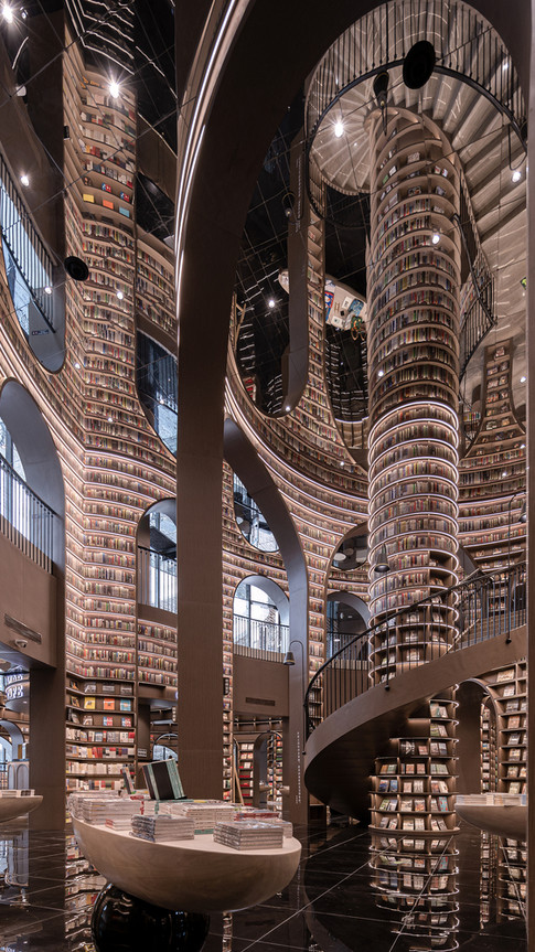 Fast Company 2020'nin En Yaratıcı İsimleri listesinde yer alan mimar Li Xiang'nın tasarladığı son Zhongshuge mağazası, Çin’in Dujiangyan kentinde kitapseverlerle buluştu. Bölgedeki bir barajdan ilham alan kitapçının tasarım ve uygulama projesi sadece altı ay sürmüş. Doğal cevizden özgün C şeklindeki raflar ve düzensiz görünen sekans mekanda samimi aynı zamanda gizemli bir atmosfer yaratıyor. Kitaplığın altında yürümek, inişli çıkışlı dağların arasında yürüme hissi veriyor. Kitap sergileme amacının ötesinde tasarımın ana fikrini oluşturan kitap rafları, heykelsi bir şekilde yükseliyor.